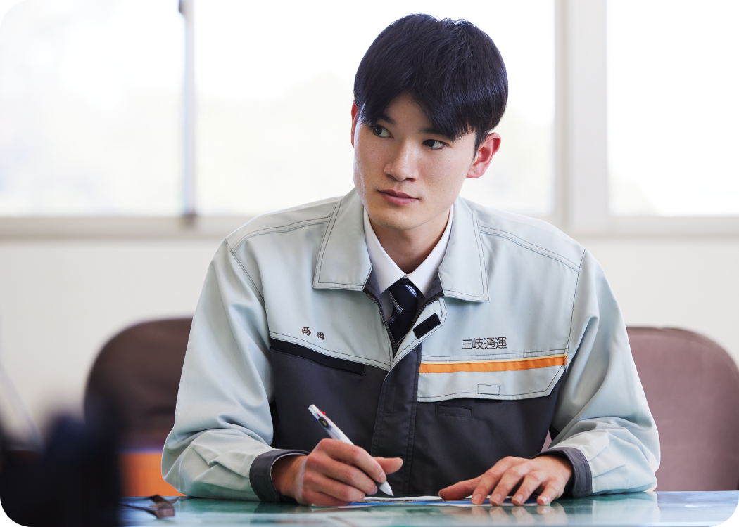 前職では自分の仕事に責任感ややりがいを感じられることがなく、転職を考えていました。知人の紹介で三岐通運のことを知り、色々と調べたり話を聞いていく中で、任される仕事内容にやりがいを感じられそうな印象を受けたため思い切って入社を決めました。私は中途採用でしたが、入社して間もない私でも分け隔てなく仕事に取り組めるのも良い社風だと思いました。
